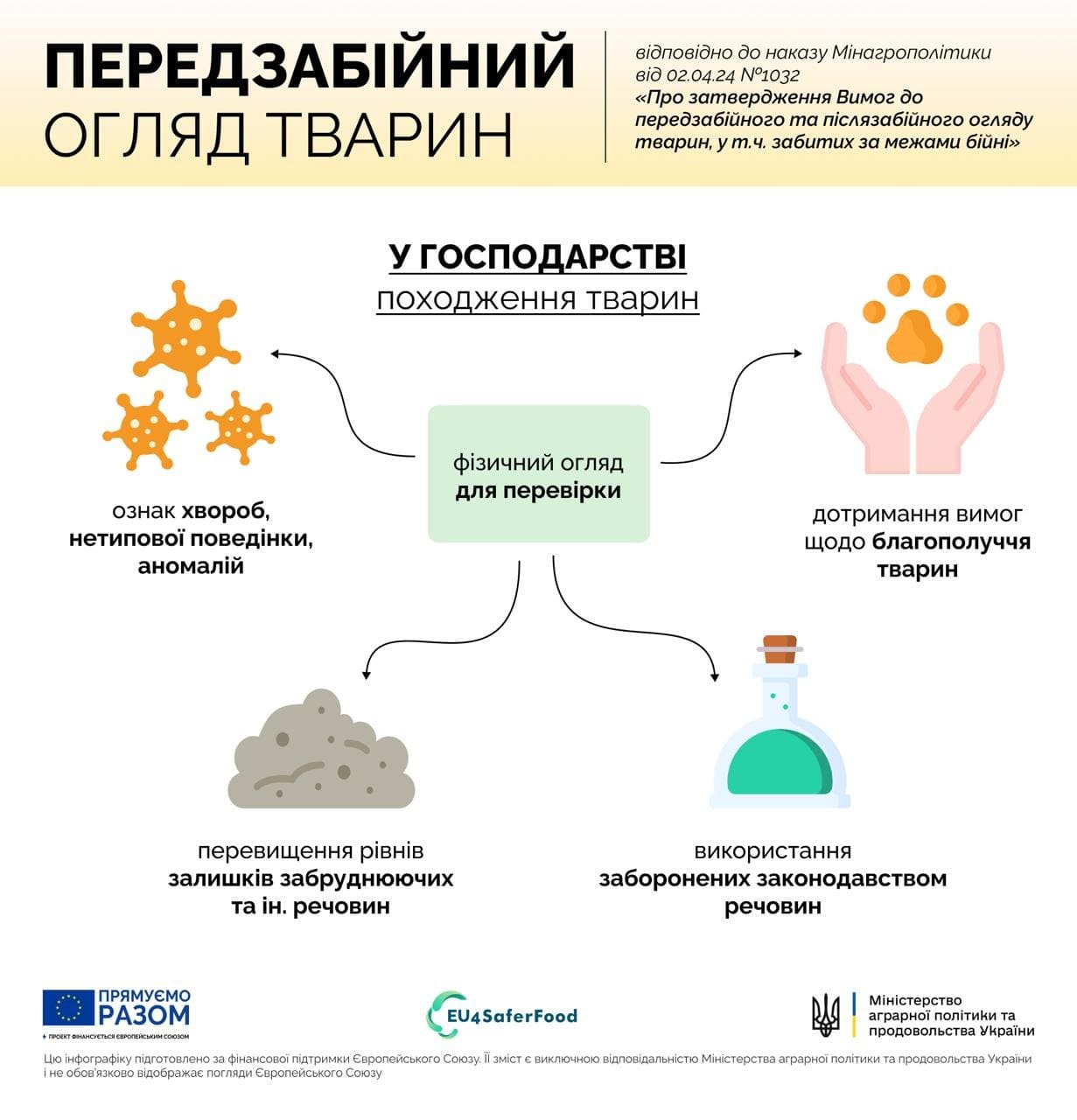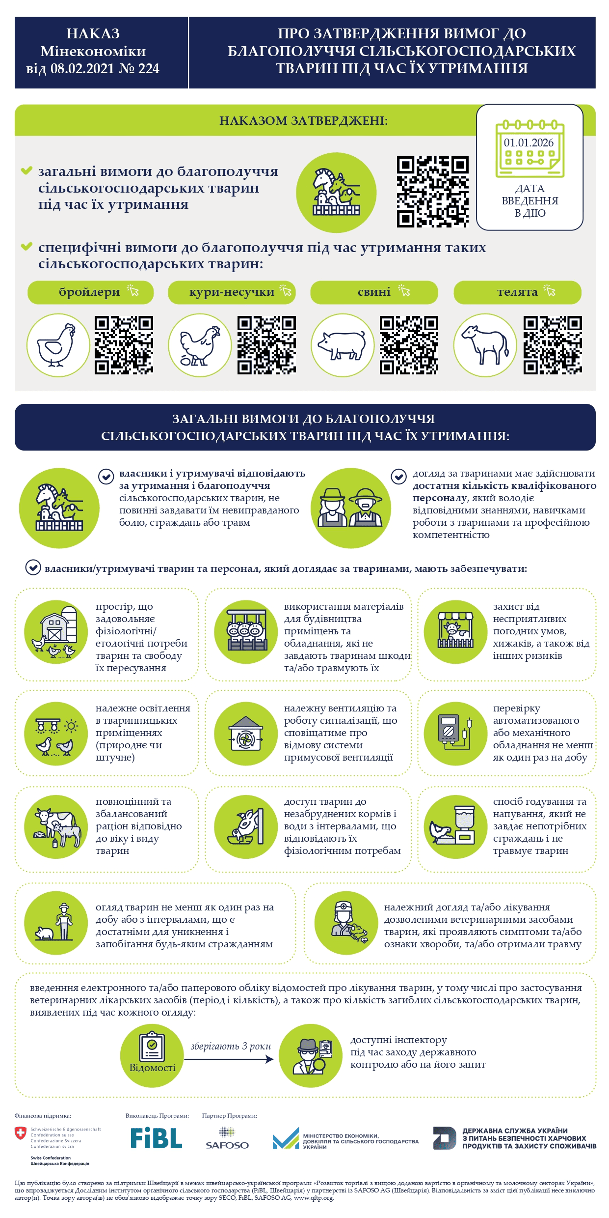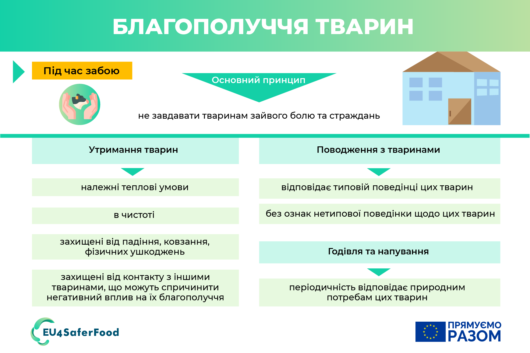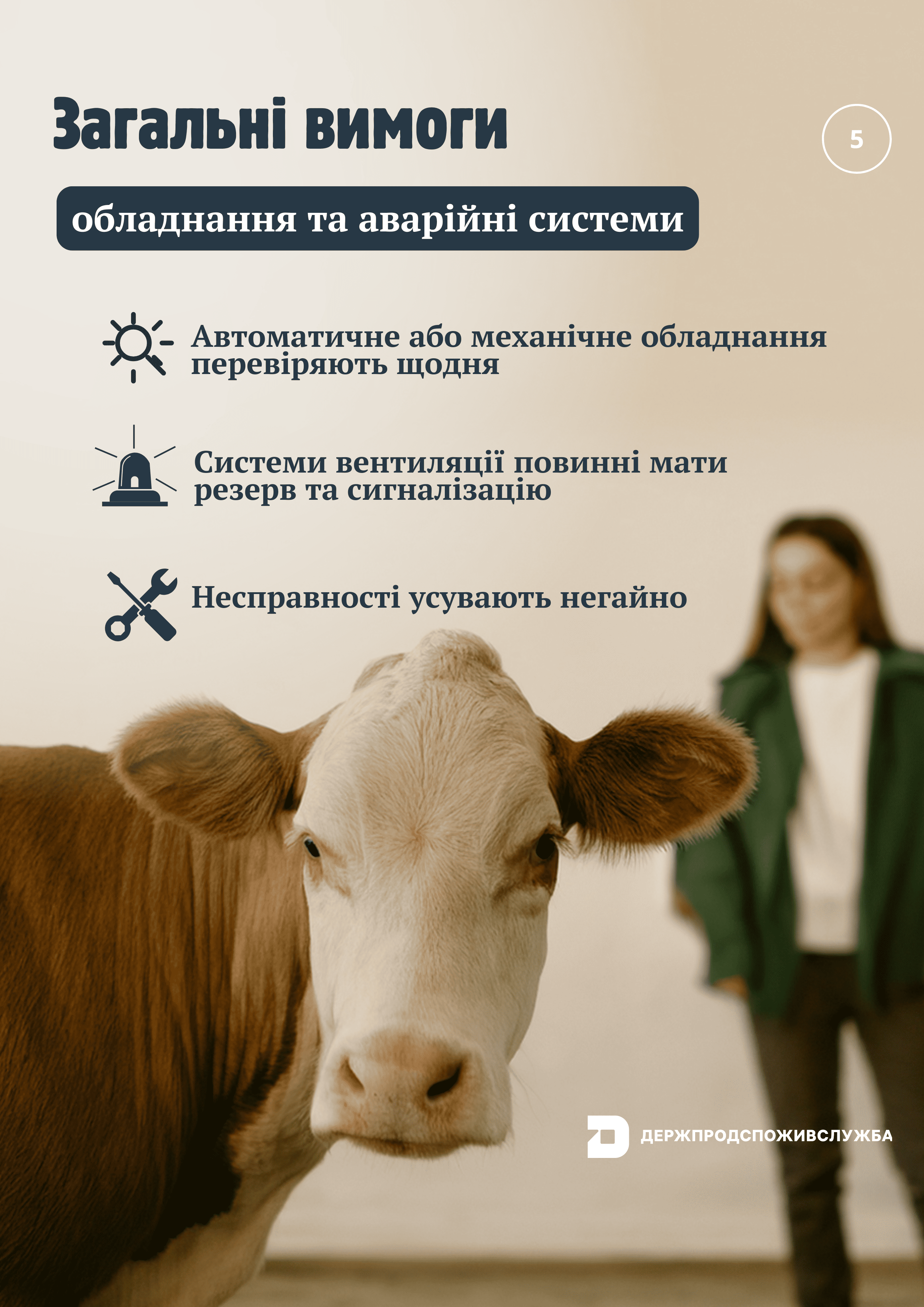 - Умови утримання: Приміщення, де утримуються тварини, повинні бути чистими, сухими, забезпечувати достатньо місця для руху та відпочинку, а також захищати від екстремальних погодних умов.