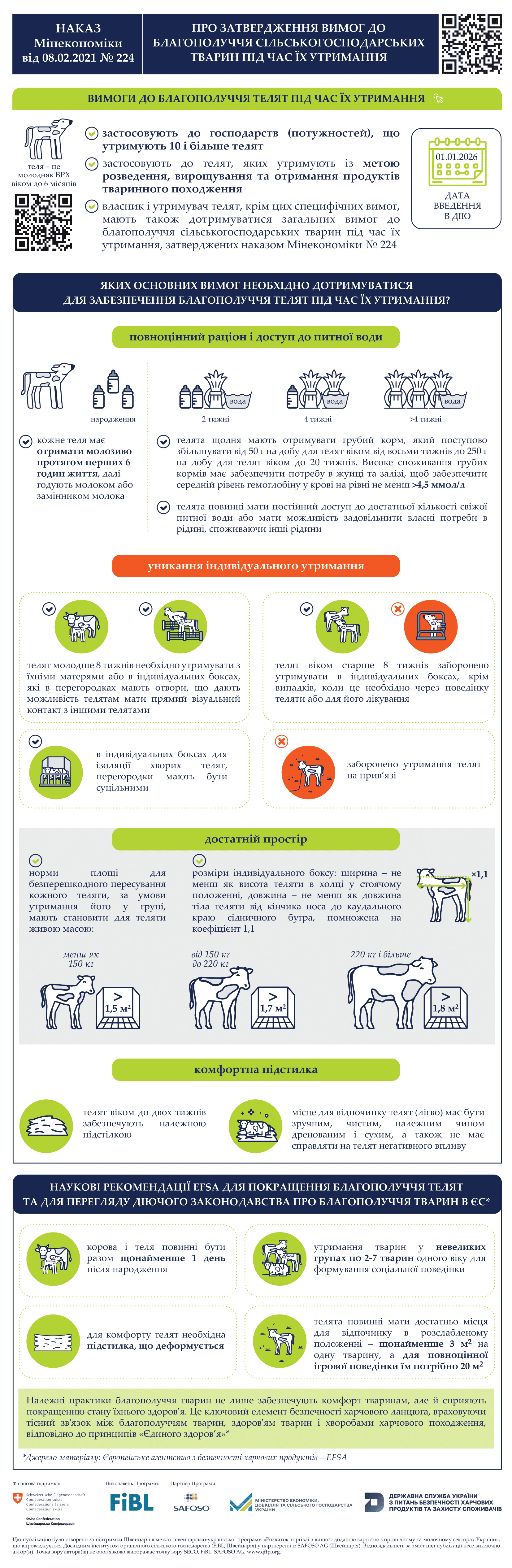 - наказ Міністерства розвитку економіки, торгівлі та сільського господарства України від 08.02.2021 № 224 “Про затвердження Вимог до благополуччя сільськогосподарських тварин під час їх утримання”